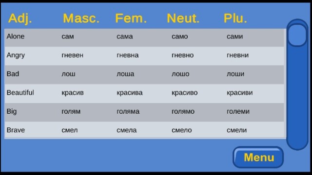 If however you have no idea that the ending of an adjective does indeed change (in Bulgarian) then it may be that you are not ready for this app. Please keep this app in mind for when you get to this stage of learning, it’s going to be an awesome resource to come back to!
